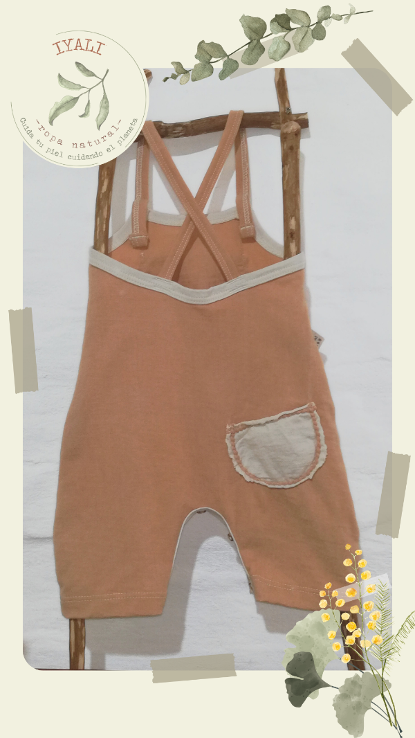 Jardinero de 0 a 3 meses -Teñido y con piel de cebolla - cordón bordado-